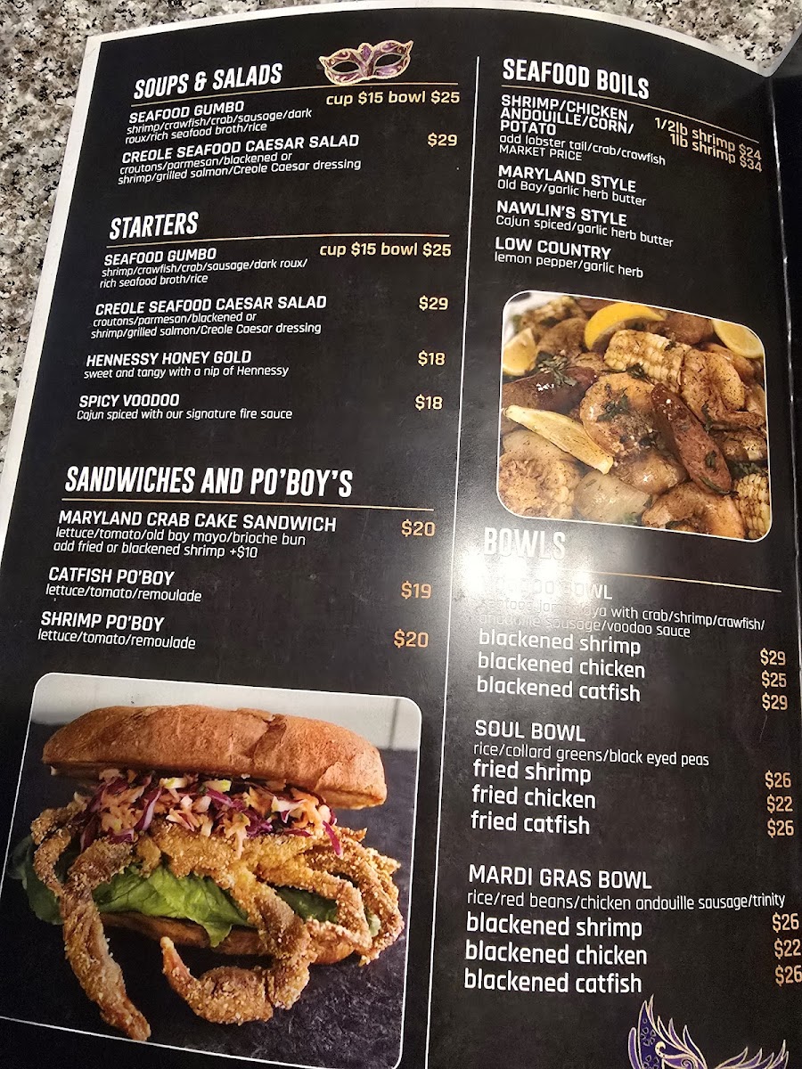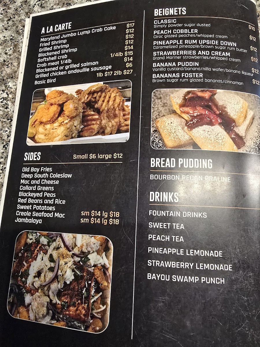Nawlins’ seafood cake, fried catfish, fried shrimp, Old Bay fries, Deep South coleslaw.