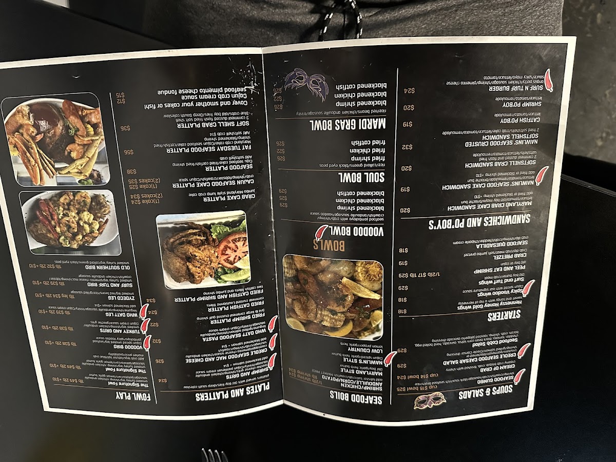 Seafood jambalaya(shrimp, crab, crawfish), voodoo sauce.
